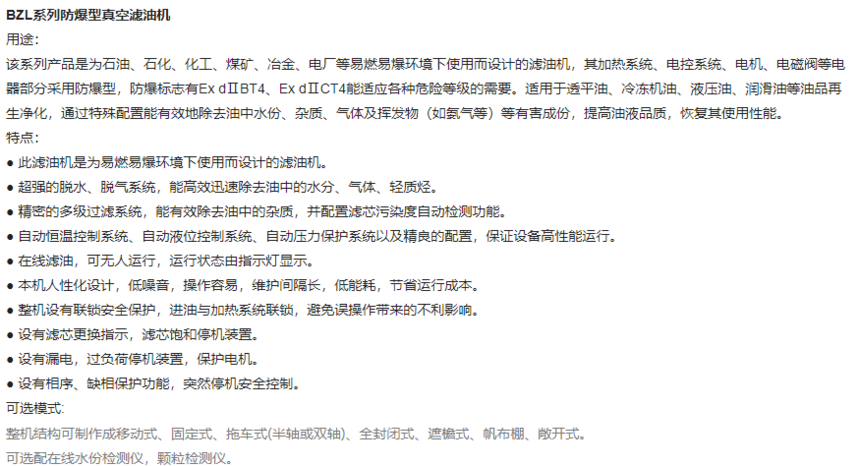 所属分类:BZL系列防爆型真空滤油机